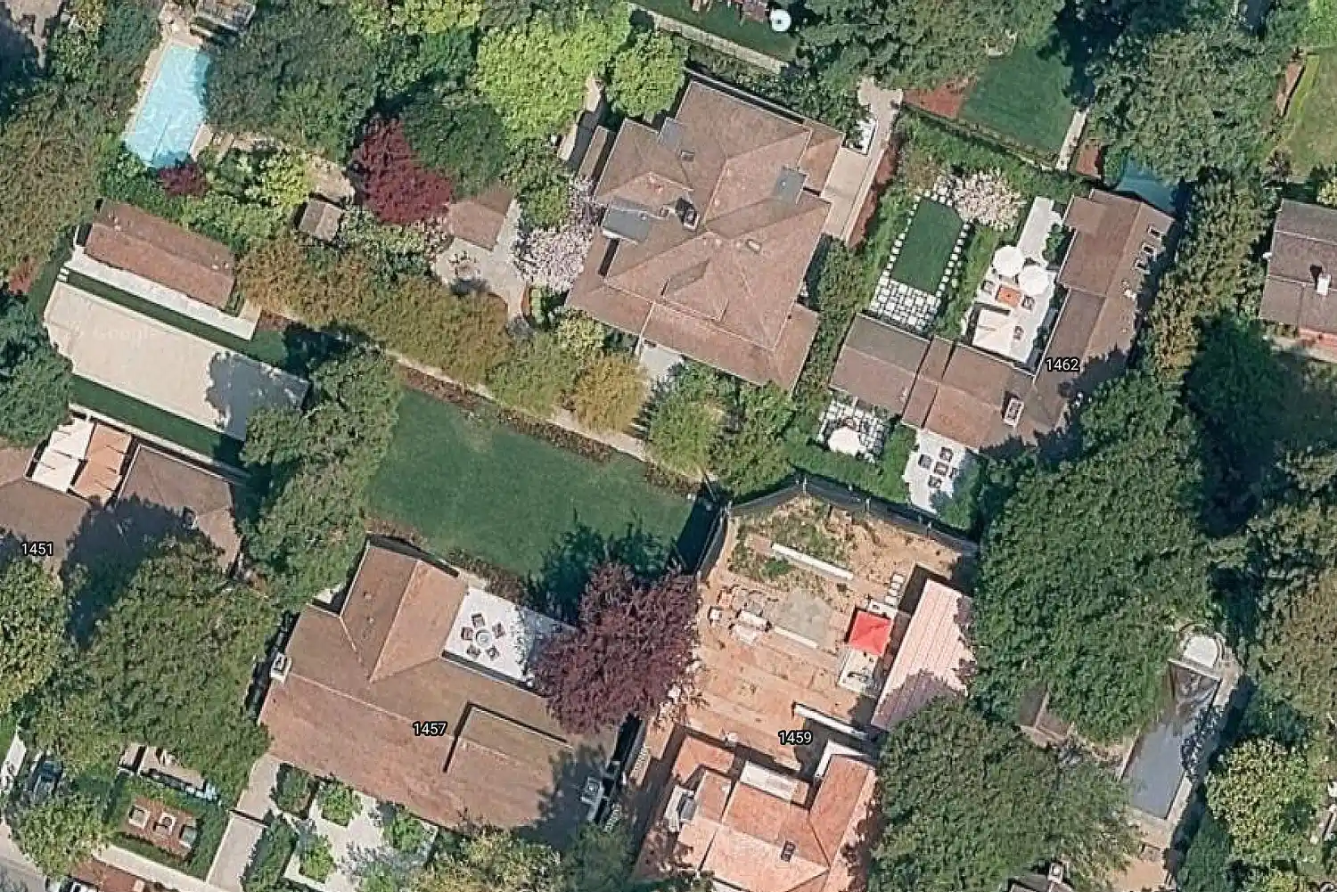 Vista aérea das propriedades de Mark Zuckerberg em Palo Alto, Califórnia. Maps.